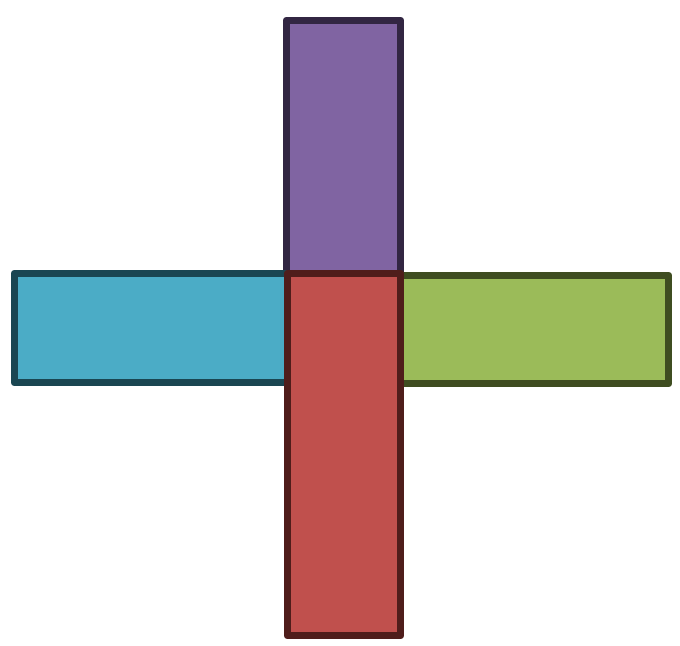 O AgenteX construiu um sinal de adição (+) com quatro retângulos geometricamente iguais e para a largura dos retângulos utilizou uma medida inteira, em centímetros.