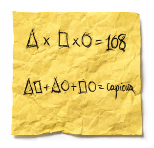O AgenteX encontrou um papel com uma anotação matemática, perto dos cacifos da escola, como mostra a figura acima. O AgenteX acha que alguém utiliza esta anotação para ocultar o código do cadeado de um cacifo. Cada símbolo parece representar um algarismo de 1 a 9.