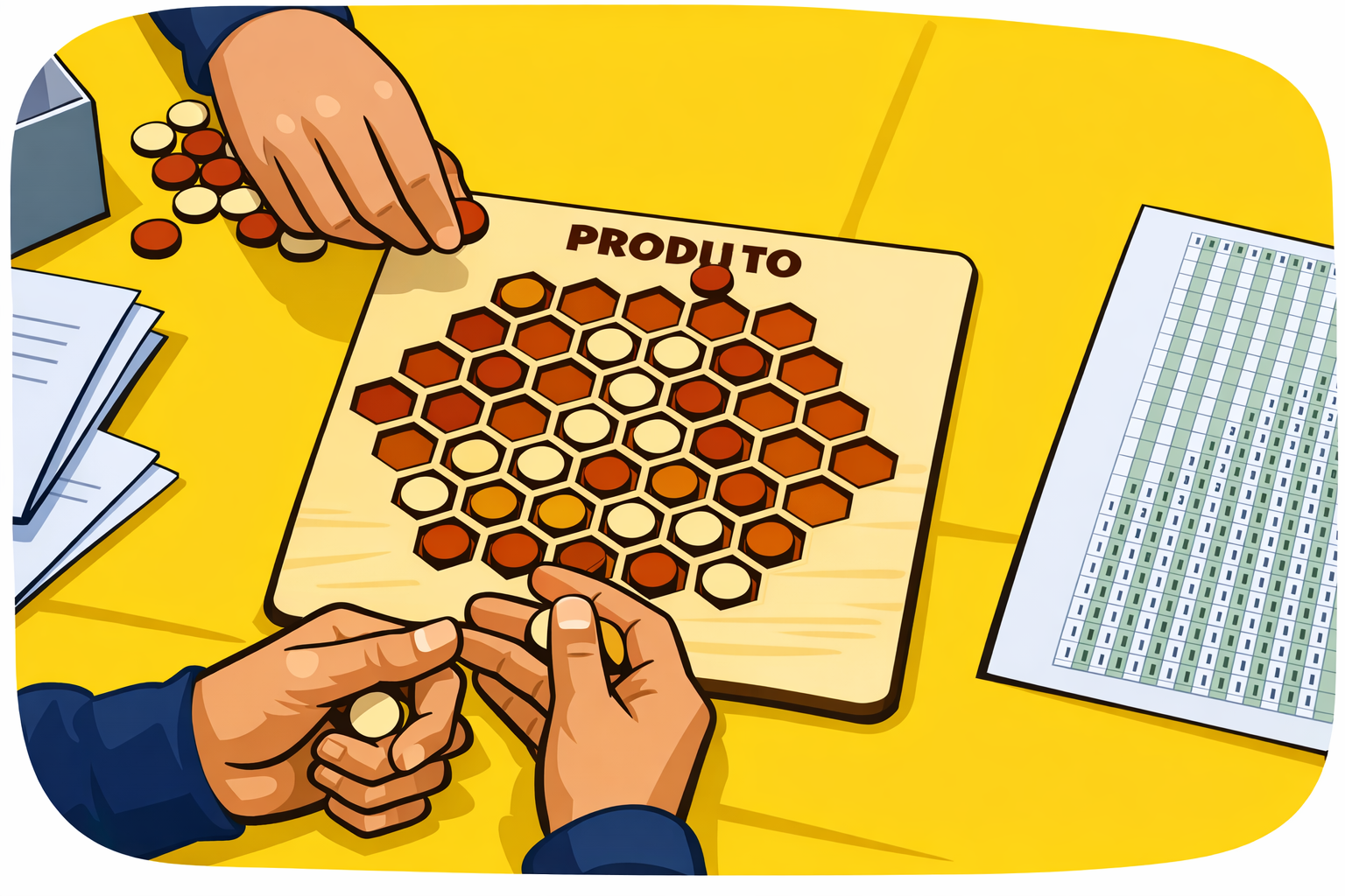 Nestes dados, faces opostas somam 7 pintas e, na construção, quando duas faces dos dados estão em contacto, têm obrigatoriamente o mesmo número de pintas.
